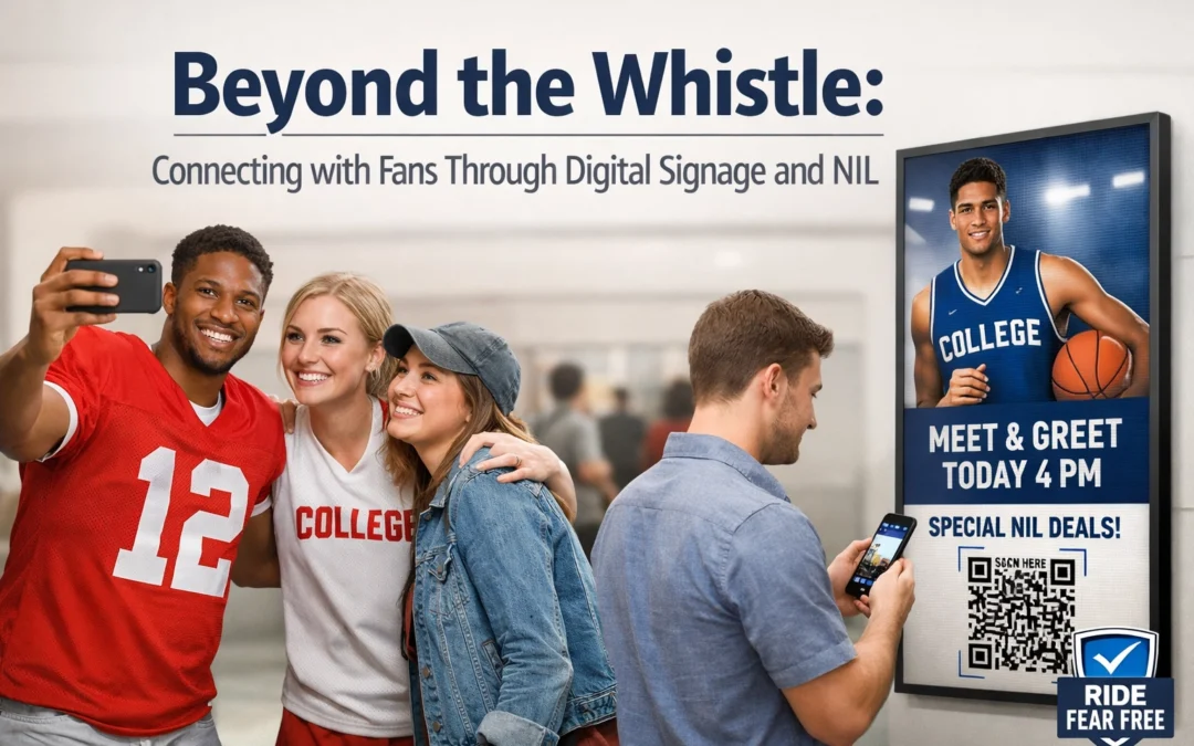 NIL provides access to those authentic voices at scale. Digital signage provides the platform to amplify them in physical spaces where fans gather and engage.