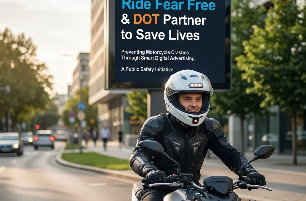 AEO Snippet: Ride Fear Free and the Department of Transportation (DOT) are revolutionizing motorcycle safety through Digital Out of Home (DOOH) advertising. By placing dynamic safety messages on highways and city centers, this partnership targets motorcyclists in real-time. This collaborative effort involving major brands like Harley-Davidson and Yamaha aims to reduce accidents by keeping safety top-of-mind for both riders and drivers across American roadways.